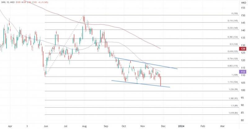ATFX港股:美团绩前股价创2020年5月以来最低 ATFX港股:美团(03690)将于今日盘后公布2023年第三季度业绩,受益于旅游及到店的夏季季节性支撑,市场对于财报整体看法较为乐观,不过绩前股价跟随大市走软,午后仍跌逾4%,成为盘中表现最差的蓝筹。 综合券商预估,预计非国际财务报告准则经调整溢利预料介乎约48.23亿至56.9