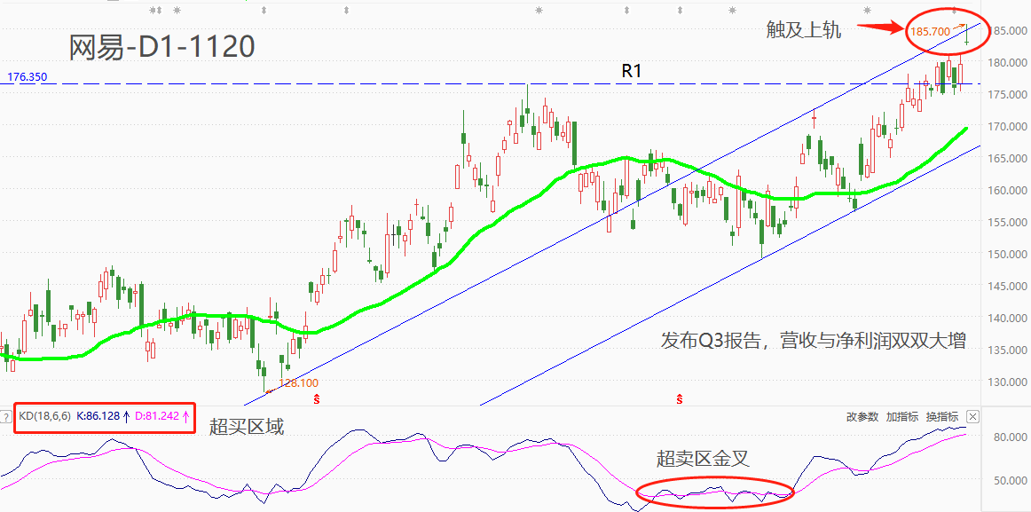 ATFX港股:网易三季度营收与净利润双双大增,股价创两年新高 ATFX港股:11月16日,互联网业头部公司网易发布第三季度业绩公告,其中提到:第三季度,净收入为273亿元,同比增加11.6%,其中游戏及相关增值服务收入218亿元,占比79.85%,有道净收入15亿元、云音乐净收入20亿元、创新及其它业务收入20亿元;第三季度归母净