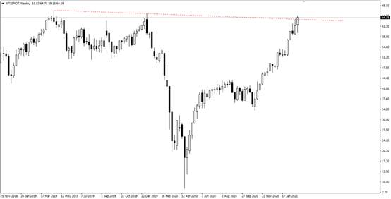 纽约商品交易所4月WTI原油期货价格上涨2.55美元,涨幅4.2%,收于每桶63.83美元,创2019年4月30日以来最高收盘价。现货价格同样突破了自去年以来的下行趋势线,可以说在OPEC+最终消除了短期市场的担忧,油价若能有效收破趋势线上方,则下周价格或将继续高涨。
