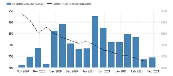 说到底疫情后,ADP数据失真的情况频有发生,过去一年ADP终值数据相较于初值水平总是有较大改动。此外,初请失业金人数已经下降至75万人下方,续请失业金人数持续减少。种种都暗示着美国在疫苗大力推进下,劳动力市场逐步复苏。