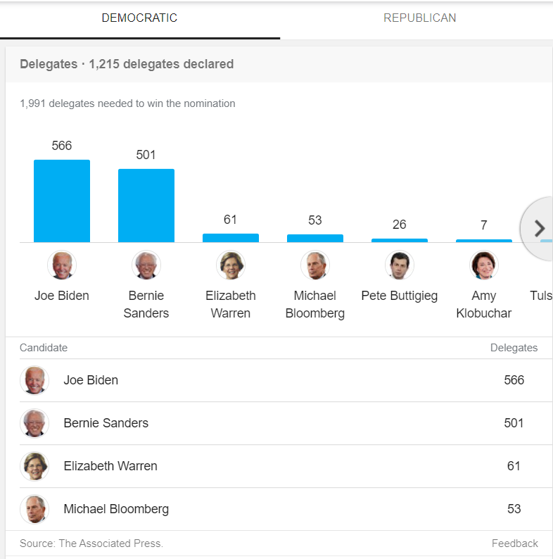 近日,美国民主党党内初选正在如火如荼进行,被许多人以看热闹方式寄予希望的激进主义者伯尼·桑德斯在超级星期二的计票结果公布之后依旧落后于乔·拜登65张选票。在这个具有前瞻性意义的结果公布之后,贪婪的华尔街悬着的心落下。道琼斯指数3月4日(周三)收盘上涨1173.50点,涨幅4.53%,股市再度上涨。 超级星期二是什么?