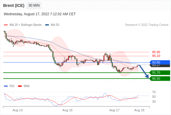布伦特原油 (ICE)? (V2)? 当日内: 短期关键阻力位在93.80。