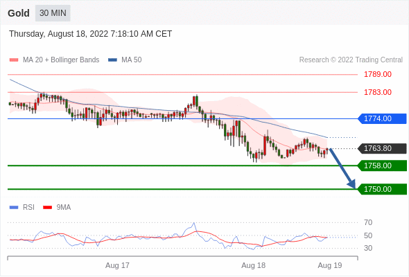 在 1774.00 之下,看跌,目标价位为 1758.00 ,然后为 1750.00 。