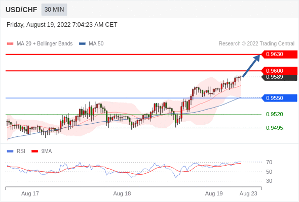 在 0.9550 之上,看涨,目标价位为 0.9600 ,然后为 0.9630 。