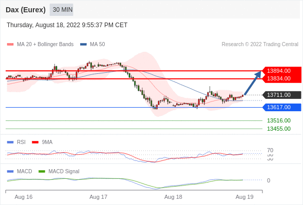 德国DAX指数期货 (Eurex)? 当日内: 看涨,当 13617.00 为支撑位。