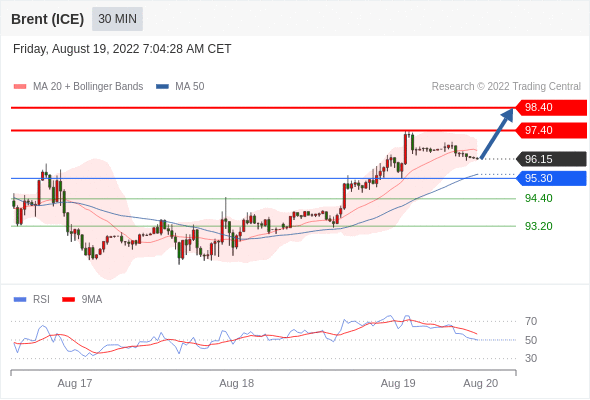 在 95.30 之上,看涨,目标价位为 97.40 ,然后为 98.40 。