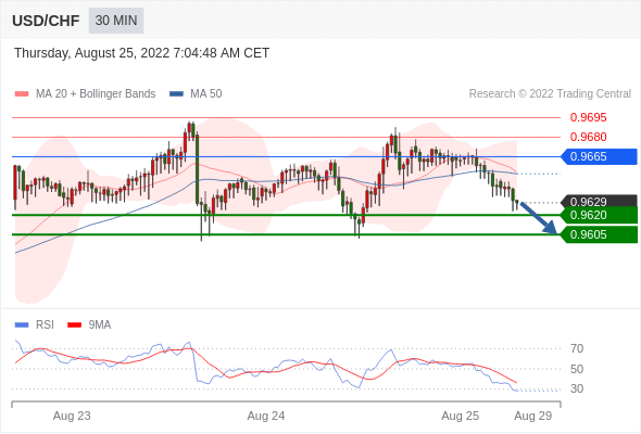 在 0.9665 之下,看跌,目标价位为 0.9620 ,然后为 0.9605 。