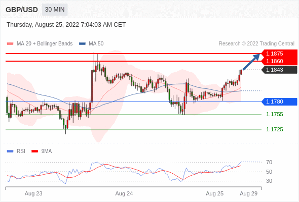 在 1.1780 之上,看涨,目标价位为 1.1860 ,然后为 1.1875 。