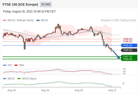 英国富时100指数期货 当日内: 看跌,在 7425.50 之下。