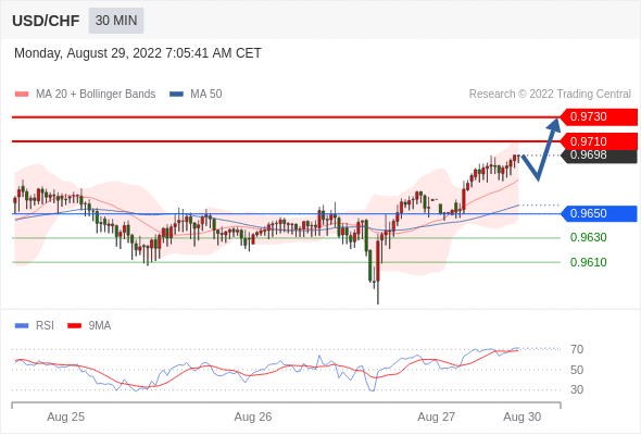 在 0.9650 之上,看涨,目标价位为 0.9710 ,然后为 0.9730 。