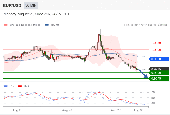 在 0.9960 之下,看跌,目标价位为 0.9900 ,然后为 0.9875 。