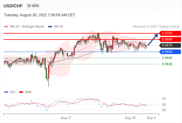 在 0.9660 之上,看涨,目标价位为 0.9690 ,然后为 0.9705 。