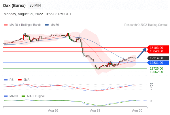 德国DAX指数期货 (Eurex)? 当日内: 看涨,当 12831.00 为支撑位。
