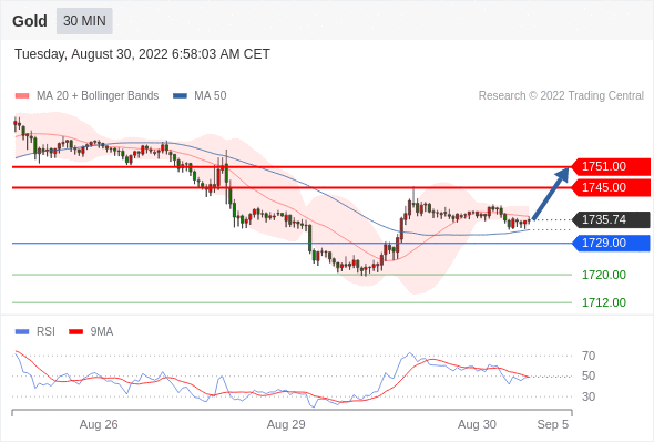 在 1729.00 之上,看涨,目标价位为 1745.00 ,然后为 1751.00 。