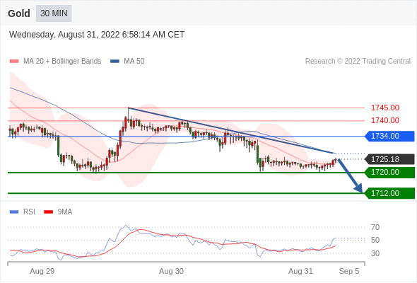 在 1734.00 之下,看跌,目标价位为 1720.00 ,然后为 1712.00 。