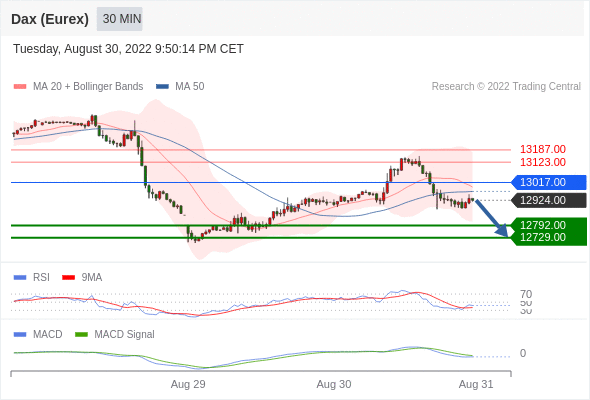 德国DAX指数期货 (Eurex)? 当日内: 看跌,在 13017.00 之下。