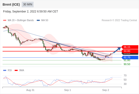 在 92.70 之上,看涨,目标价位为 94.80 ,然后为 96.15 。