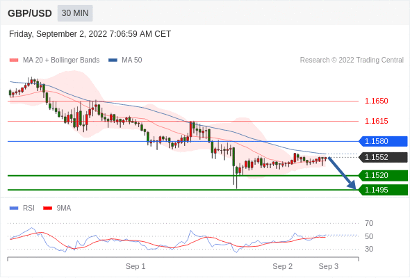 在 1.1580 之下,看跌,目标价位为 1.1520 ,然后为 1.1495 。