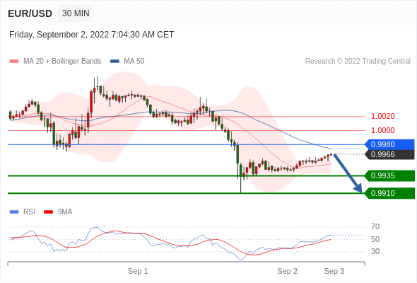 在 0.9980 之下,看跌,目标价位为 0.9935 ,然后为 0.9910 。