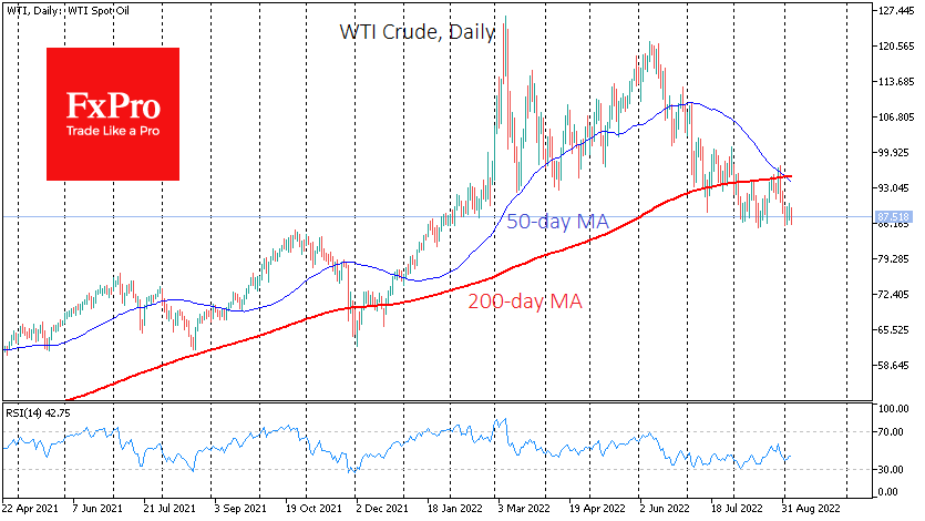 WTI价格在不到24小时内就消化了北溪关闭和配额削减的消息,回到了8月份的低点。 而且,卡特尔已经威胁说,它可能每月做出一次以上的决定。 这也是一个明显的迹象,即在报价下跌的情况下采取更积极的行动。