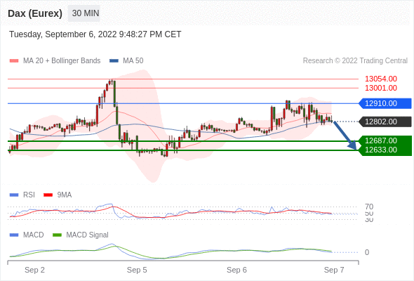 德国DAX指数期货 (Eurex)? 当日内: 看跌,当 12910.00 为阻力位。
