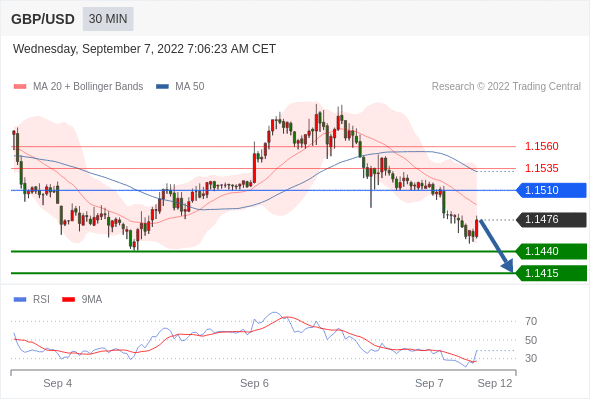 在 1.1510 之下,看跌,目标价位为 1.1440 ,然后为 1.1415 。