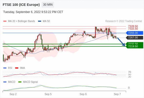 英国富时100指数期货 当日内: 看跌,在 7293.00 之下。