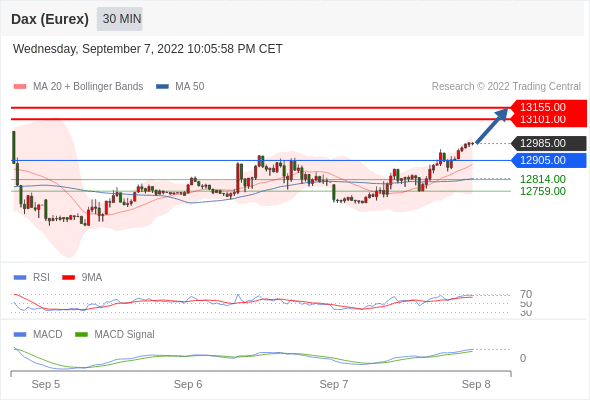 德国DAX指数期货 (Eurex)? 当日内: 看涨,当 12905.00 为支撑位。