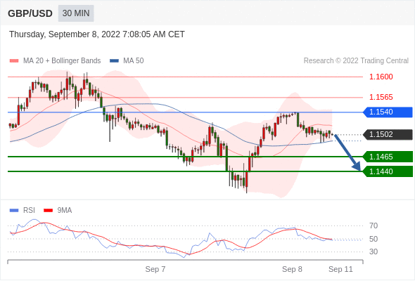 在 1.1540 之下,看跌,目标价位为 1.1465 ,然后为 1.1440 。