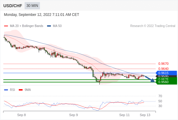 在 0.9615 之下,看跌,目标价位为 0.9575 ,然后为 0.9560 。