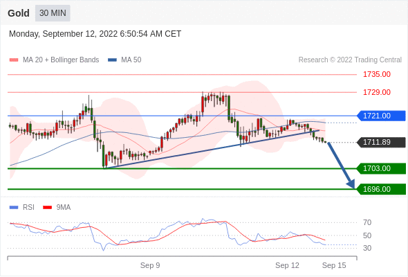 在 1721.00 之下,看跌,目标价位为 1703.00 ,然后为 1696.00 。