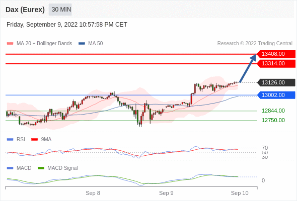 如跌破 13002 ,德国DAX指数期货 (Eurex) 目标方向定在 12844 和 12750 。