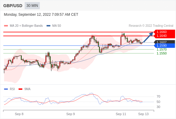 在 1.1590 之上,看涨,目标价位为 1.1640 ,然后为 1.1660 。
