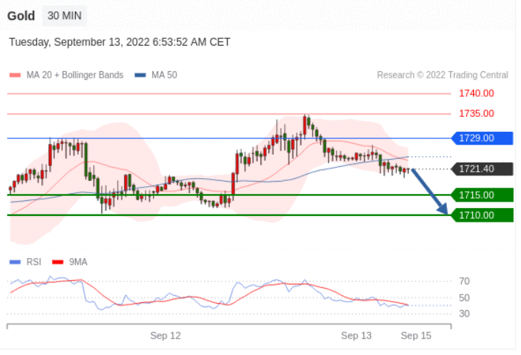 转折点:1729.00交易策略:在 1729.00 之下,看跌,目标价位为 1715.00 ,然后为 1710.00 。