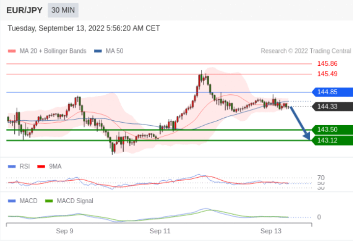 备选策略:如突破 144.85 ,EUR/JPY 目标方向为 145.49 和 145.86 。