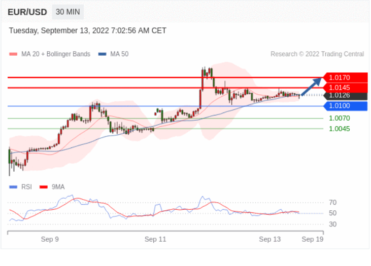 交易策略:在 1.0100 之上,看涨,目标价位为 1.0145 ,然后为 1.0170 。