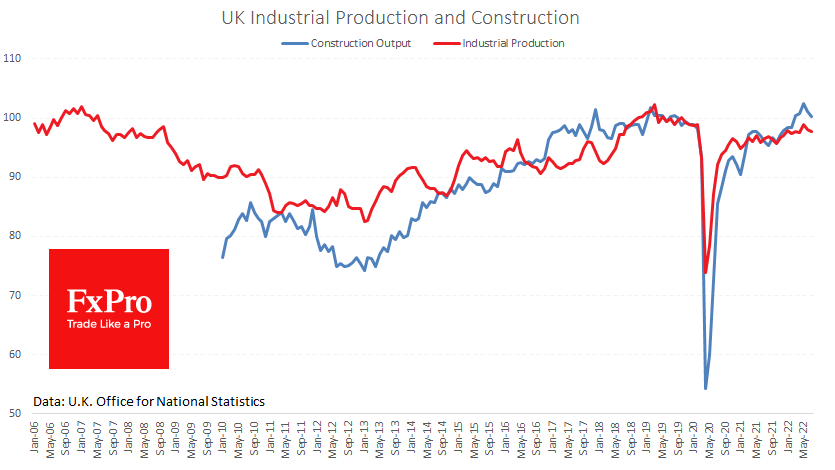 FxPro高级分析师Alex?Kuptsikevich指出:建筑和工业生产指数在快速下降并随后因疫情而复苏后,回到了2019年的区间。 它们在这些水平附近停滞了一段时间。 制造业和建筑业处于经济周期的前沿,它们传递的信息一点也不乐观。