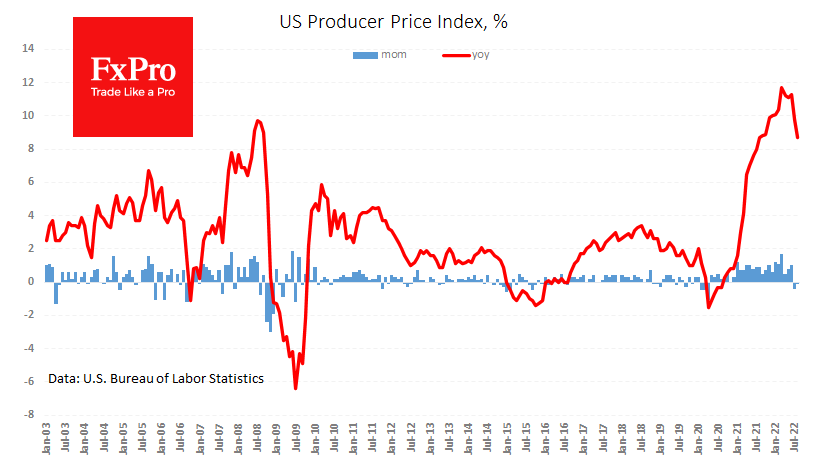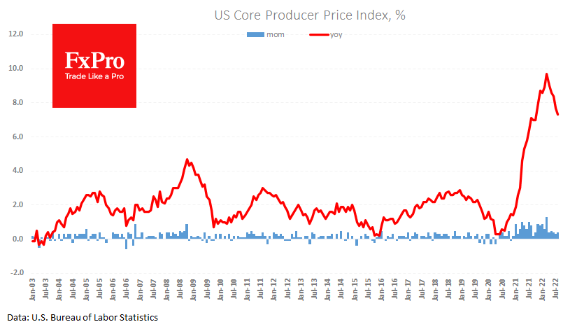 FxPro高级分析师Alex?Kuptsikevich指出:这一决定性放缓带来的积极情绪被通胀趋势(就像昨日的CPI报告一样)看起来更广泛的事实破坏了。核心PPI上个月增长0.4%,在过去21个月里稳步上升。与整体指数一样,3月份折合成年率的通胀率(9.7%)达到峰值,最新数据显示同比增长7.3%。