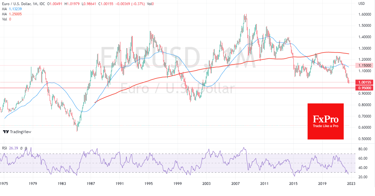 美元的进一步上涨可能使欧元兑美元失去平价附近的支撑,使其在0.95-0.96区域寻找底部。在合成欧元诞生的整个过程中,我们已经在这方面看到了相当多的逆转和加速。