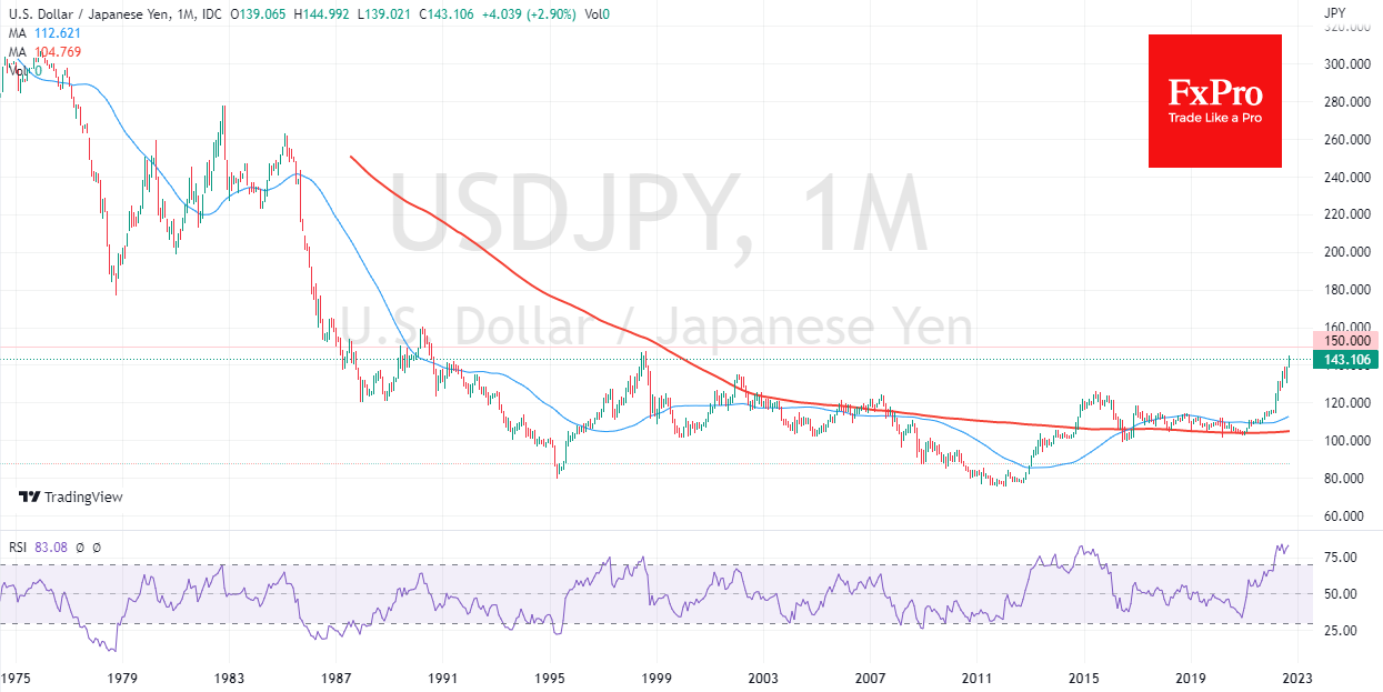 对美元日元来说,通往150的道路似乎正在打开。 然而,我们正谨慎地看待进一步增长的潜力。 现在有报道称,日本央行正在为干预汇率做准备。 一般来说,货币市场对美元的估值极高,这可能在市场上引发控制不力的多米诺骨牌效应,这不符合金融和货币监督机构的利益。