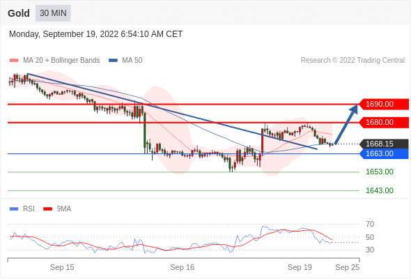 在 1663.00 之上,看涨,目标价位为 1680.00 ,然后为 1690.00 。