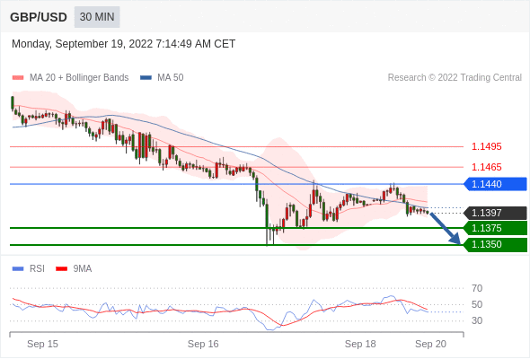 在 1.1440 之下,看跌,目标价位为 1.1375 ,然后为 1.1350 。