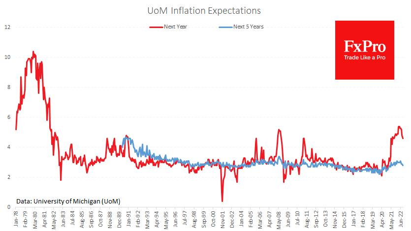 这一转变表明,通胀预期是不固定的,这将给美联储一些空间,使其不会踩下货币政策的刹车踏板。习惯了低通胀的美国人在看到汽油价格下滑和进口价格下降后,很快就把预期恢复到了多年来的正常水平。