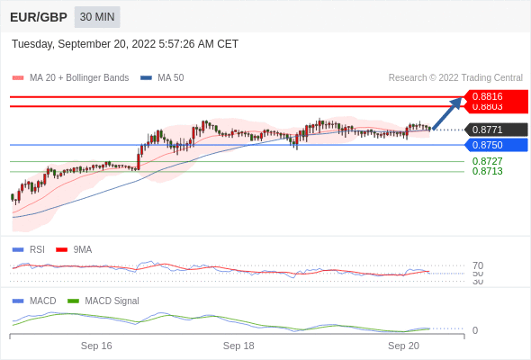 欧元/英镑 当日内: 目标为 0.8816。