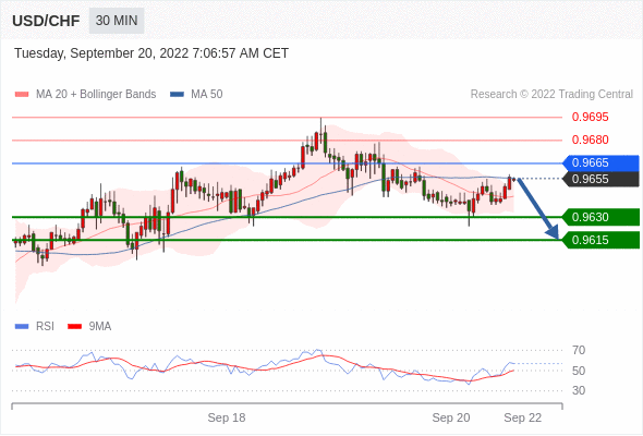 在 0.9665 之下,看跌,目标价位为 0.9630 ,然后为 0.9615 。