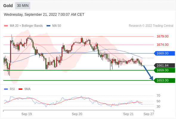 在 1669.00 之下,看跌,目标价位为 1659.00 ,然后为 1653.00 。