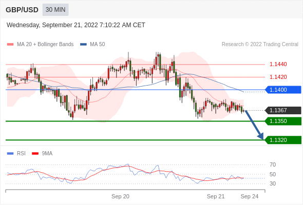 在 1.1400 之下,看跌,目标价位为 1.1350 ,然后为 1.1320 。