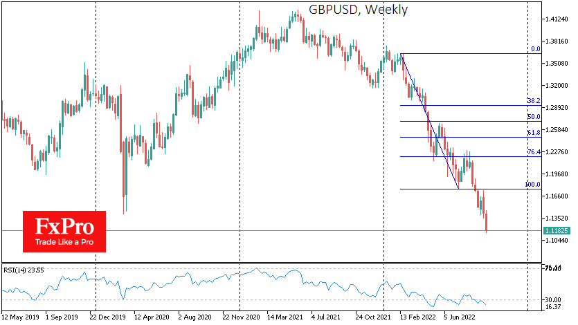 从技术角度来看,市场动态也不存在逆转的希望。我们看到主要货币的抛售非常有序,而异常剧烈的波动和下跌往往是周期结束的特征。也许主要货币对还没有到达拐点。
