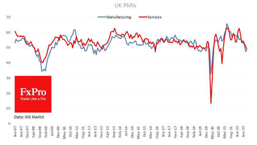 PMI初步估计也没有给出购买资产的理由,指出经济活动进一步衰退的速度快于预期。 综合采购经理人指数从49.6降至48.4,低于预期的49.0,此前服务业指数从50.9跌至49.2。