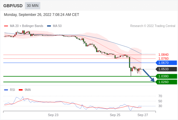 英镑/美元 当日内: 短期关键阻力位在1.0670。